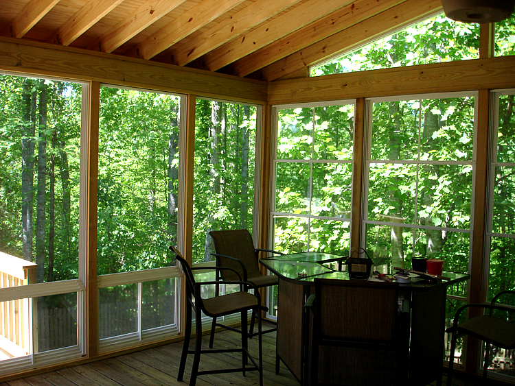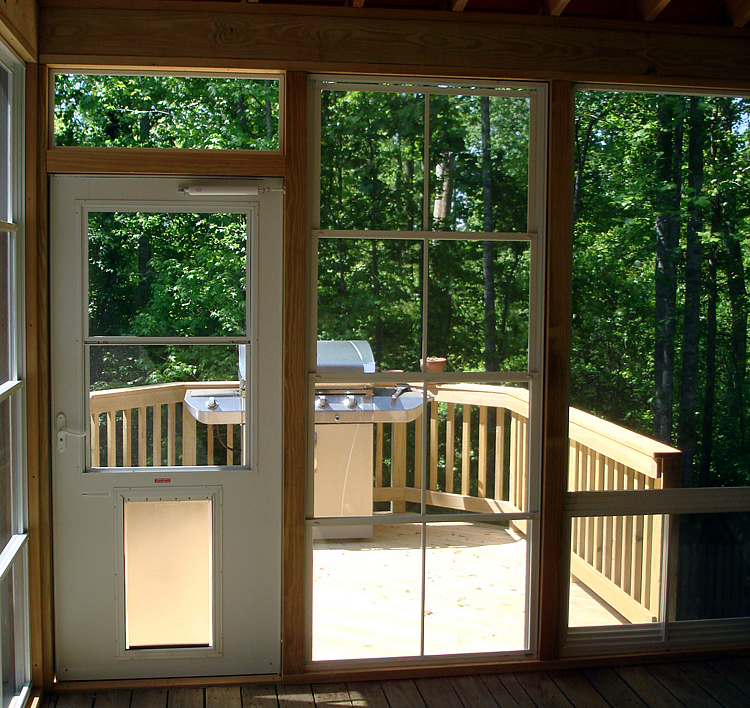 They originally considered another company, who gave them a price of over $40,000 for an all-metal product. They decided this wasn’t exactly what they had in mind and contacted Archadeck of the Piedmont Triad. Together we came up with a design that would transform their existing deck into a screen porch with and EZE Breeze window system, which would enable them to utilize the area for more seasons throughout the year and in essence give them a 3-season room. The windows can be raised and lowered to accommodate the South’s changing seasons and to extend their outdoor living enjoyment well into the fall. The window system will keep the bugs out too. The area even includes a custom doggy door, so their dog can come and go as he pleases while enjoying the new space along with his owners.