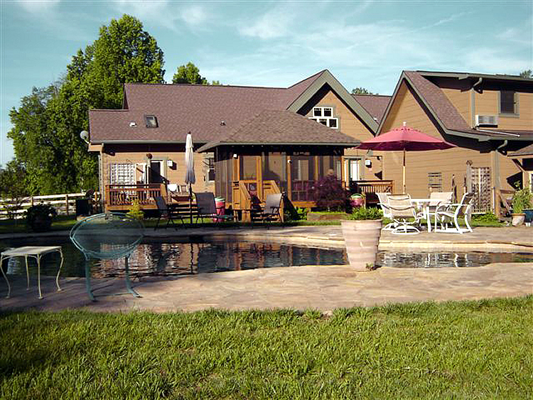 “Our back deck, which extends the length of the back of our house, faces East but even though it is in the shade in the afternoon heat builds up on it during the day. We wanted some way to make this area more comfortable and inviting since we had just finished an in-ground pool construction about 20’ across the lawn from the deck. My idea was to “connect” the back of the house to the pool area by building a four-sided screened porch as a jutted out extension of the deck. This would ensure better air circulation since the porch would be away from the house itself. Our roof lines on the back of the house presented a problem anyway, as did two bedroom windows. Connecting a porch to the house was not a possibility."