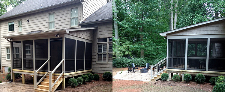 On the interior of the room we added a charming beaded vinyl ceiling which is also low maintenance, an aluminum framed door, a ceiling fan and several electrical outlets. The screened space to keep the insects at bay on those North Carolina afternoons when all is aflutter, including the mosquitoes.