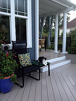 Decks aren’t the only outdoor spaces that can be amended to better accommodate your furry friends. Adding a knee wall or railings are common requests for screened porches. While a screen below your porch handrail may provide visibility, it may also provide a clawing wall for your cat or a challenge for your dog eying a squirrel. Choosing pet friendly materials for your outdoor space will also give you a space that is easy to clean in the event of an accident. For this reason ceramic tile is a nice option for many 3 and 4 season rooms. Composite is the best choice for decks among pet owners. Convenient soap and water cleanup saves time and reduces the dangers of possible stains caused by your pampered pet.
