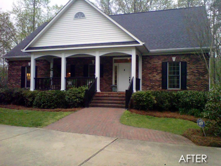 "Thank you and your team for the amazing transformation of our front porch!! Wow, it’s hard to believe it’s the same house! The first attachment is a picture of how our house looks today and the second is the “before”. We ordered a gorgeous oak front door this weekend and it will be here in early June so I’ll send you a picture of the complete make-over once it arrives.The transformation has exceeded Duncan’s and my expectations!
