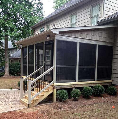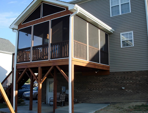 Another roof style which use makes sense in certain situations is a shed roof. A shed roof slopes downward from the house connection. Shed roofs are simple in nature and work great with a tie-in to one-story home needing a low roof connection. Having architectural elements and upstairs windows that won’t allow a roof or certain roofs would cover or cause view obstructions also make great candidates for shed roofs. Flat roofs can also make a viable option where the situation calls for a roof style that will not intrude on structural or design elements.