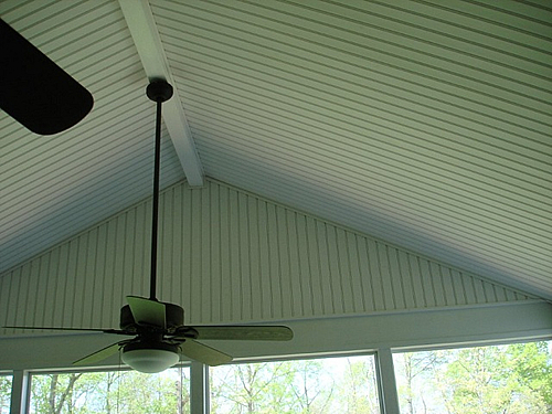 This photo shows the interior of the same 3 season room as shown above. The vaulted ceiling gives the space an open feel.
