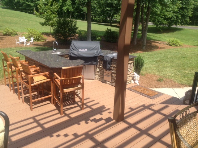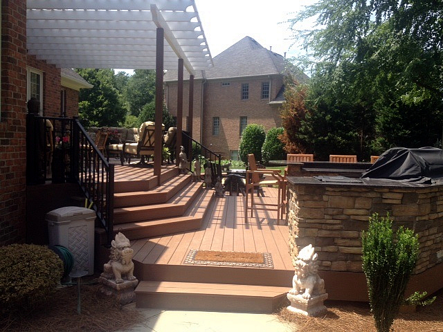Spacious outdoor kitchen, low maintenance pergola and deck in Oak Valley Winston-Salem NC.