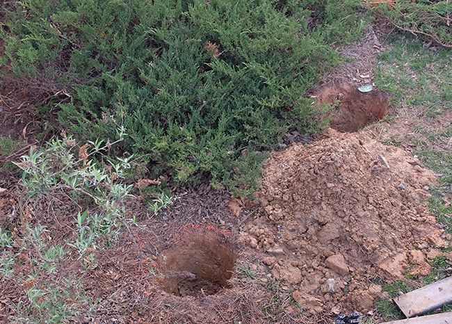 The new footings have been dug to specifications in preparation for the outdoor living area that will extend from the right side of the 3-season room.
