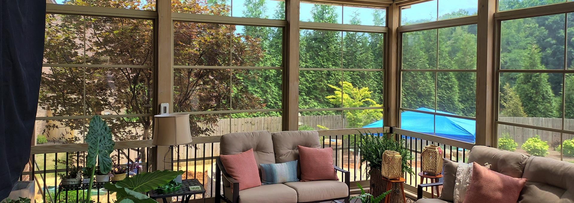 Some of our more popular design-build projects here in the Piedmont Triad area, are multi-season rooms, made possible with Porch Conversion 3 season room windows. A Porch Conversion window system includes 4-track clear vinyl windows that transform screened porches into a multi-season outdoor living rooms.