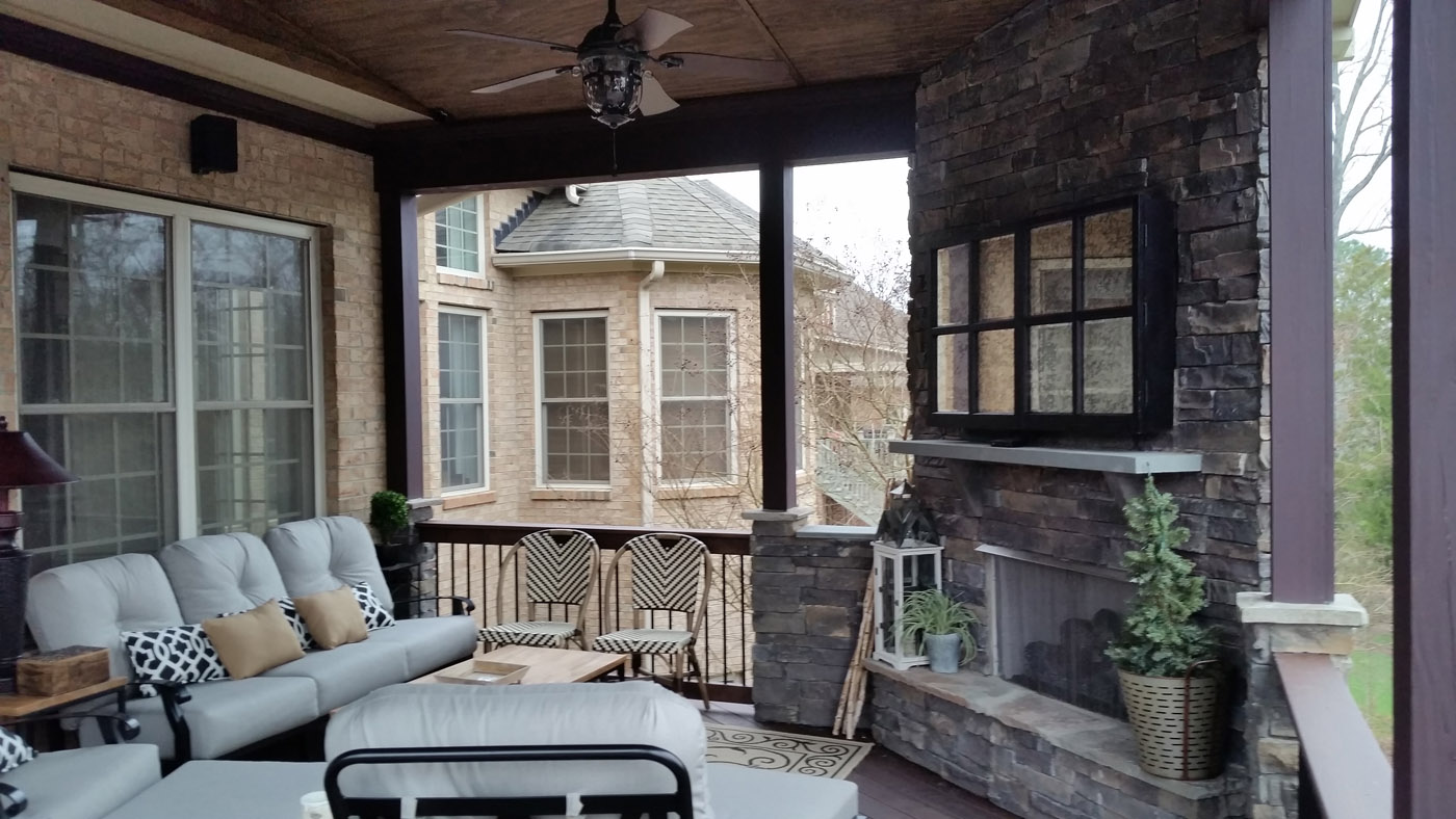 You can further customize your covered porch by choosing from a large variety of custom options and finishing touches. Add a Duke blue or Wolfpack red painted tongue and groove ceiling to show your team spirit. Install recessed lighting and a ceiling fan for greater comfort on warm, summer evenings. Add a large-screen television, outdoor fireplace, or wet bar or more entertaining options. However you use your covered porch, our talented design team will help you make the space uniquely yours for years of comfort and enjoyment.