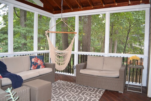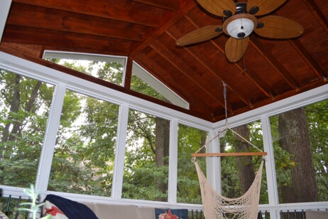 For our client, a screened porch provided a tranquil feeling of being in a tree house, perfect for relaxing. Additionally, the enclosed porch also gave her an outdoor space with a sense of privacy from nearby neighbors. The open gable roof balances the coziness of the space by keeping the porch bright and airy.