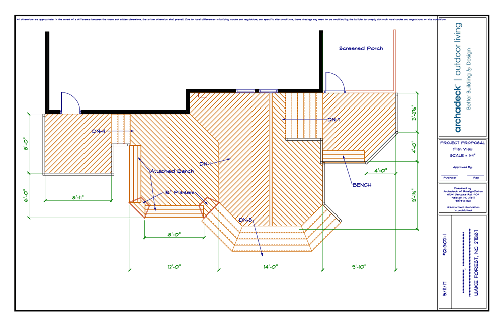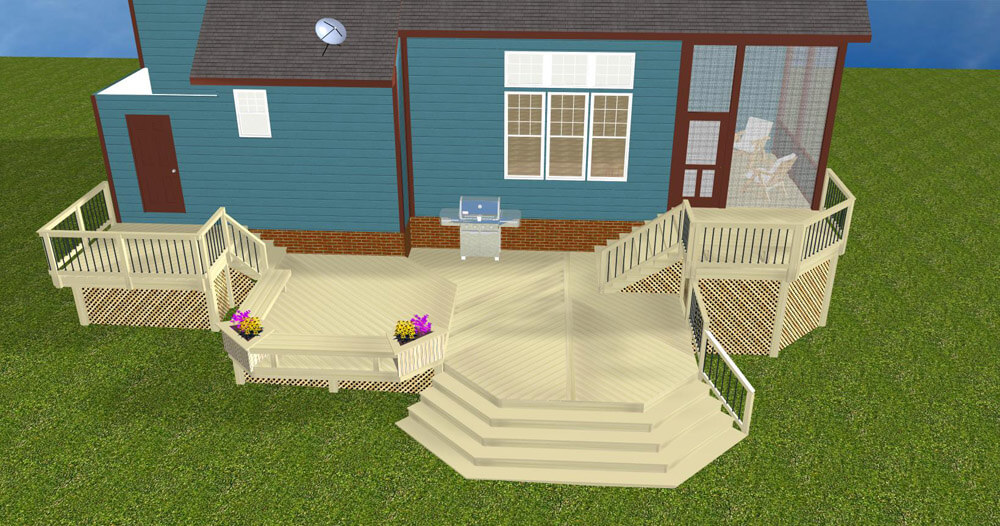 As part of our process, we create a 2D project proposal that is similar to a building floor plan. The project proposal shows the placement of your new outdoor space relative to your home’s exterior. It includes dimensions, decking patterns, and special features to provide you with an easy-to-understand, birds-eye view of the potential project.