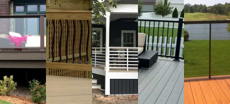 When choosing railings for your new deck or porch it is important to learn building codes for the height requirements in your local area. Once your height requirements have been verified, then select a style and material that complements your home's architecture. We encourage our clients to consider factors like view obstruction, desired level of privacy, and overall aesthetic appeal. It is also a good idea to choose a color and finish that best suits your outdoor space.