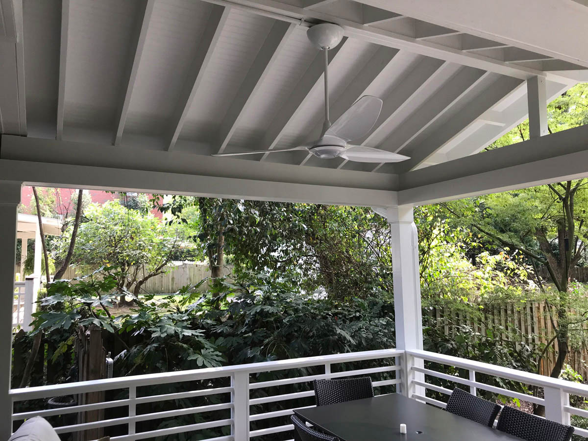 Exposed Rafters in an Open Gable Porch Ceiling Are a Must-Have for Coastal Designs