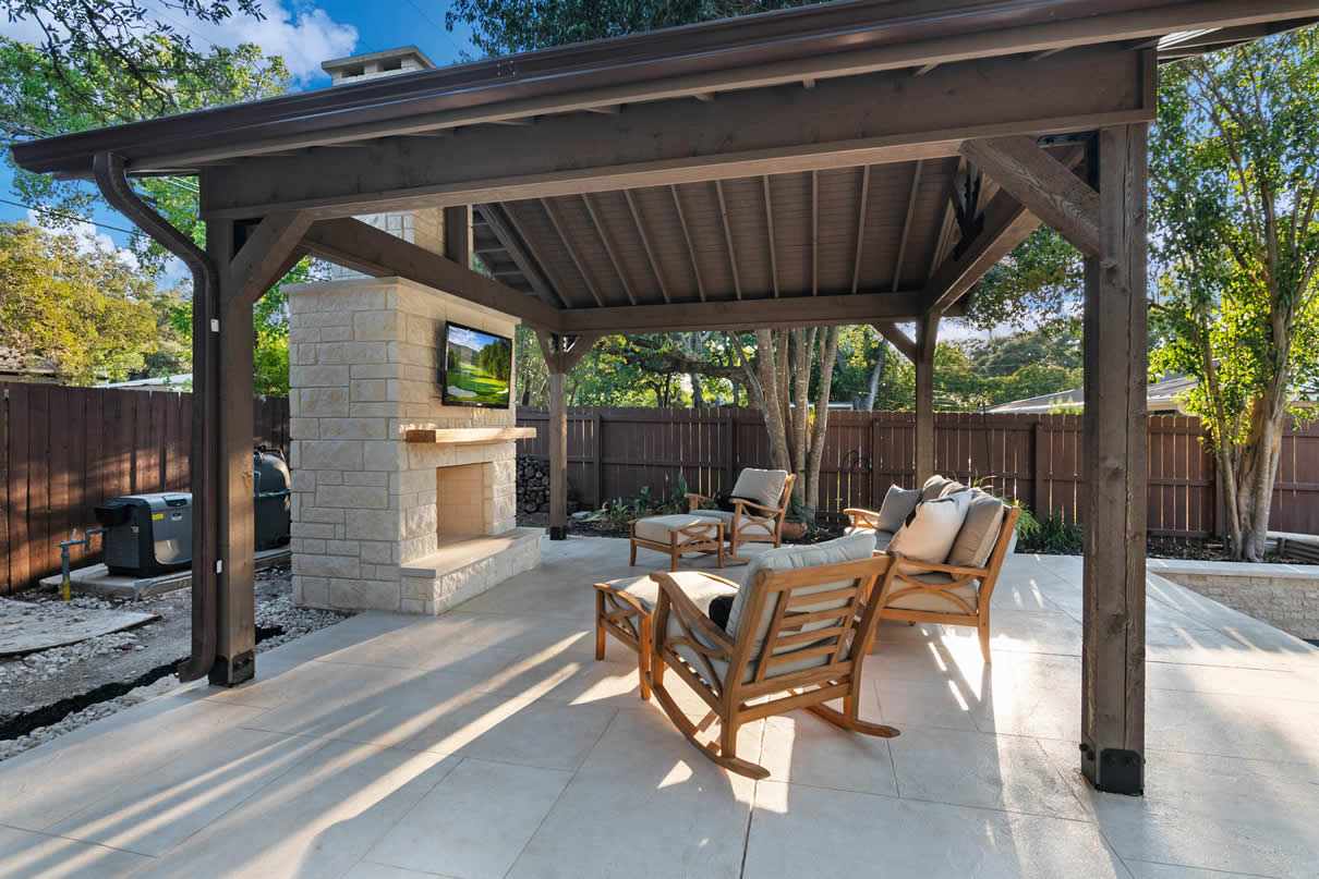 Archadeck of San Antonio Hill Country builds beautiful backyard pavilions in Bulverde TX. These spaces are so useful and inviting, you might have trouble getting guests to leave. Our pavilions provide a protected backyard space that can become a true outdoor living destination for your family. There’s hardly a better way to take in a movie in front of the fire than outdoors, beneath your porch or patio roof. Host sports and big event viewing parties or give the kids a place to chill when you host family holidays. With Archadeck as your pavilion builder, our proprietary design-build capabilities will ensure that your backyard pavilion is quintessentially your own, a dedicated space for all the outdoor living uses you can dream up.