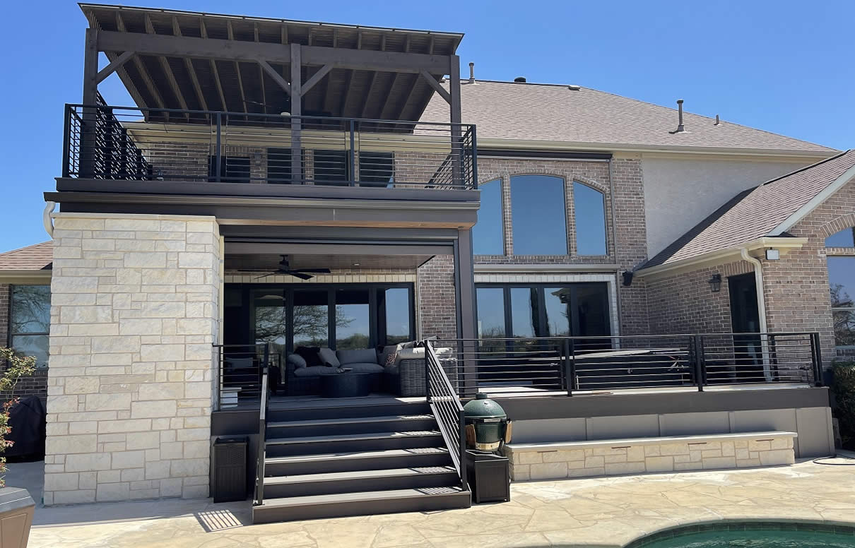 Archadeck of San Antonio Hill Country designs and builds the upper echelon of custom decks. And make no mistake, our deck designs are not short on style or amenities. Many of our clients choose to design at least a portion of their deck with a roof, which provides them with the option to enjoy the open air or seek respite from the sun or light rain beneath their deck roof. These covered spaces are uber inviting, and with matching or complimentary finish materials to your home, they can appear to have been built at the same time.