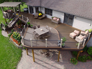 - Create separate but adjacent dining and lounging spaces for entertaining and daily needs with a covered porch and composite deck combination.