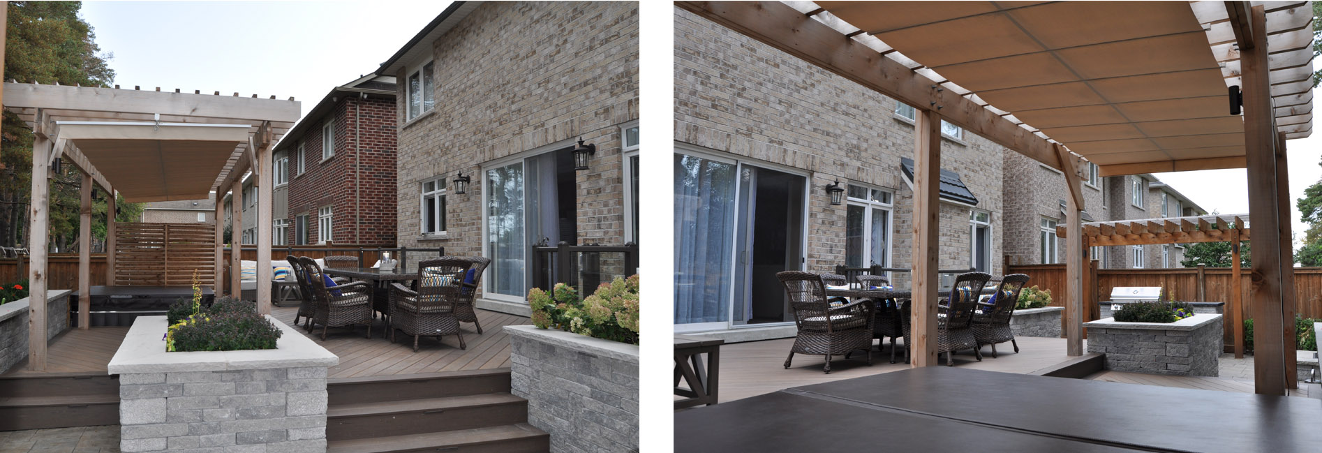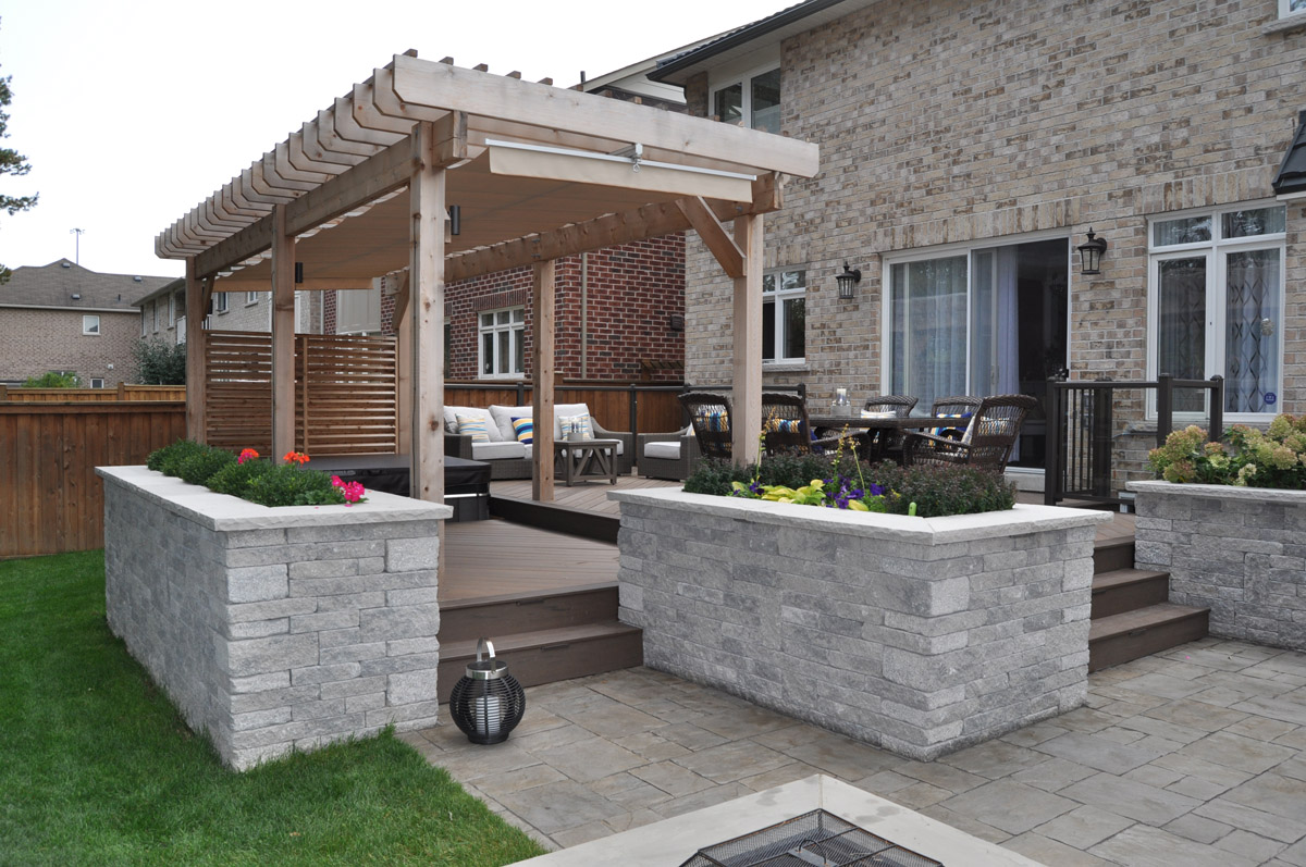 Creating multiple outdoor adjoining living spaces in a Mississauga Rd.