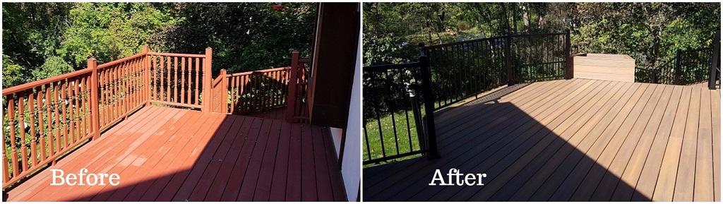 In addition to the appearance of the wooden decking boards, the homeowner was also frustrated with the design of the deck itself. The first area of concern was the footprint of the existing deck, it was too narrow for a table and chair ensemble at only 12’ at its widest point. The second item of displeasure was the current design featured no access to their backyard gazebo, or the backyard itself. After a thorough inspection and listening attentively to the areas the homeowner wish to improve, we were able to come up with a redeck and redesign that left this homeowner elated!