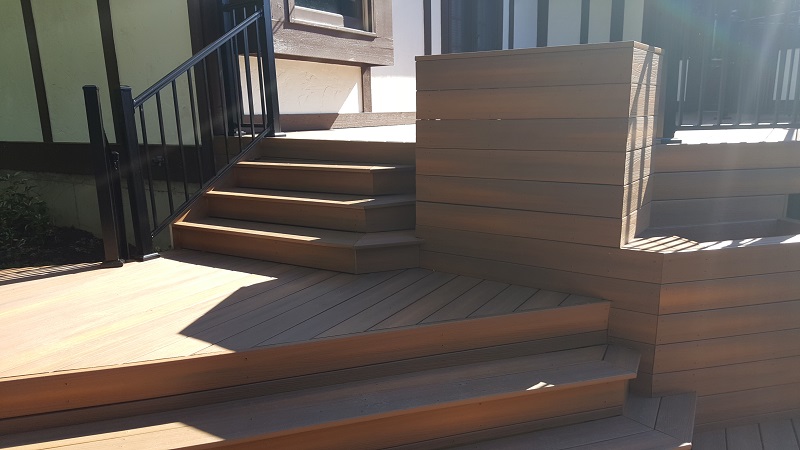 We redecked the entire structure using Fiberon Horizon decking in the beautiful Ipe color. The newly surfaced deck was followed by replacement of all the existing rails using Keylink railing. Last but not least, we added the planter box flanking the transition area from the upper and lower deck so the homeowner could use it store firewood for the fire pit located just steps away.