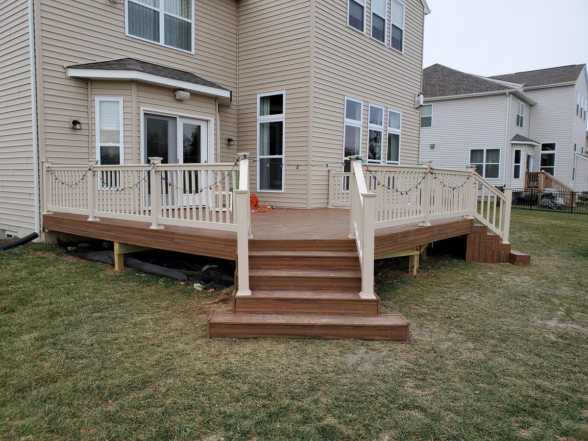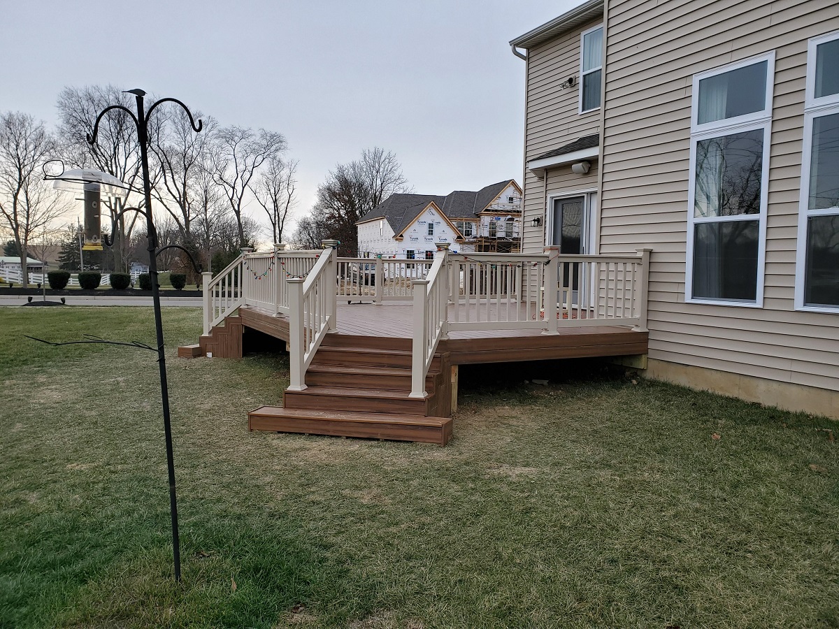 This new home in Stonehill offered the perfect blank canvas for a new custom Archadeck deck. Working with these homeowners, we built a custom-shaped deck with two separate points of entry and exit, perfect for outdoor entertaining. No foot traffic jams on this expansive deck. These homeowners and their guests will be able to move freely about the space!