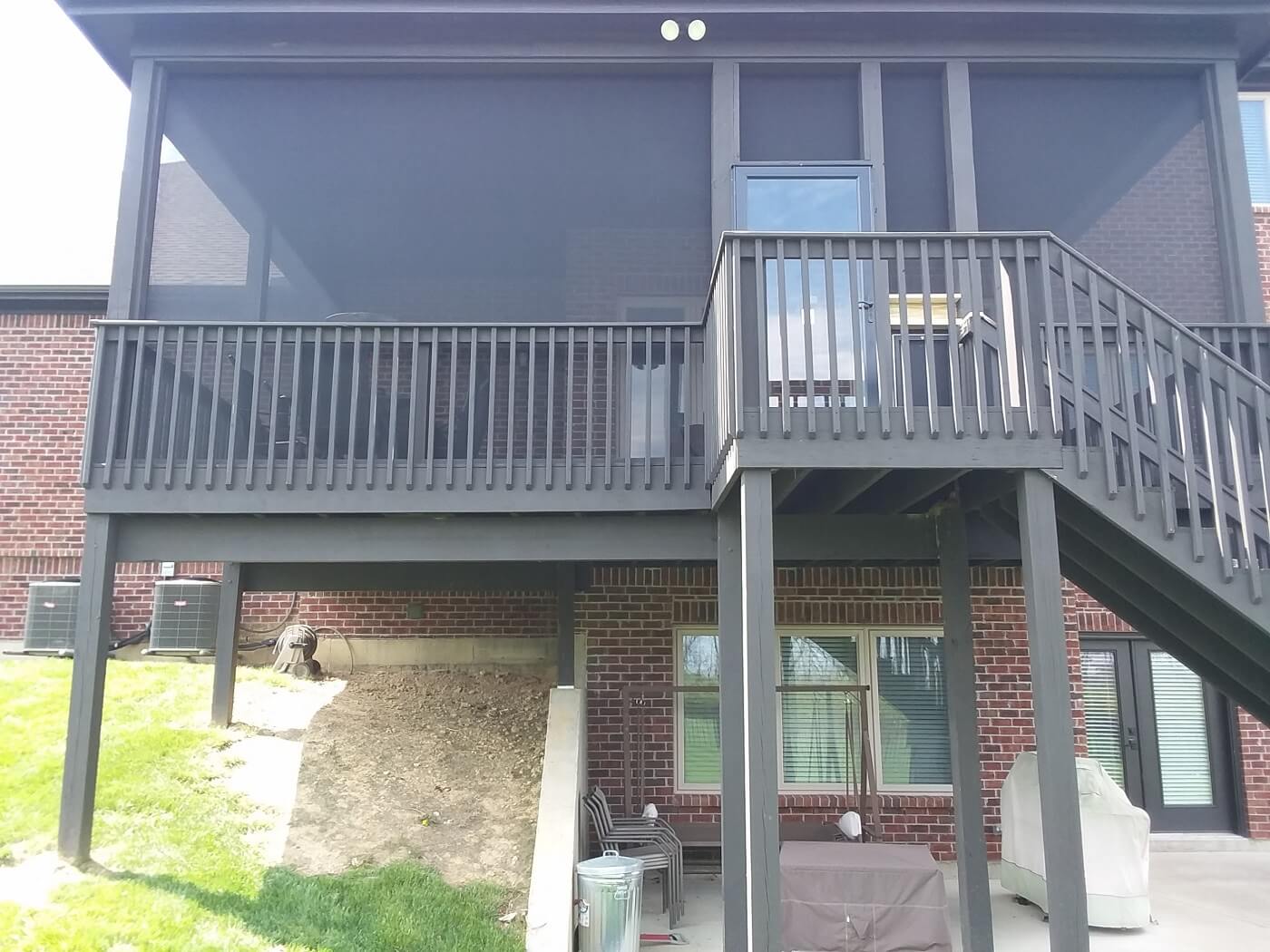 Our most recent project in the Clear Creek Township of Waynesville is a conversion project. When the homeowners reached out to us, they were looking for a solution to add protection to their existing elevated open porch.