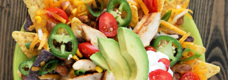Place chips on a round pizza pan, top with bean and corn mixture, cheese,